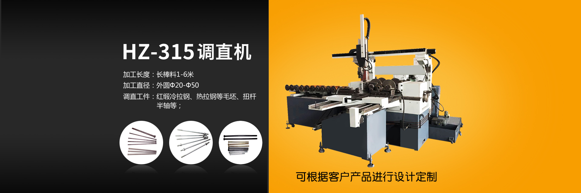 調(diào)直機專用于圓棒料毛坯或熱處理變形材料,通過雙曲線原理進行擠壓達到調(diào)直效果。